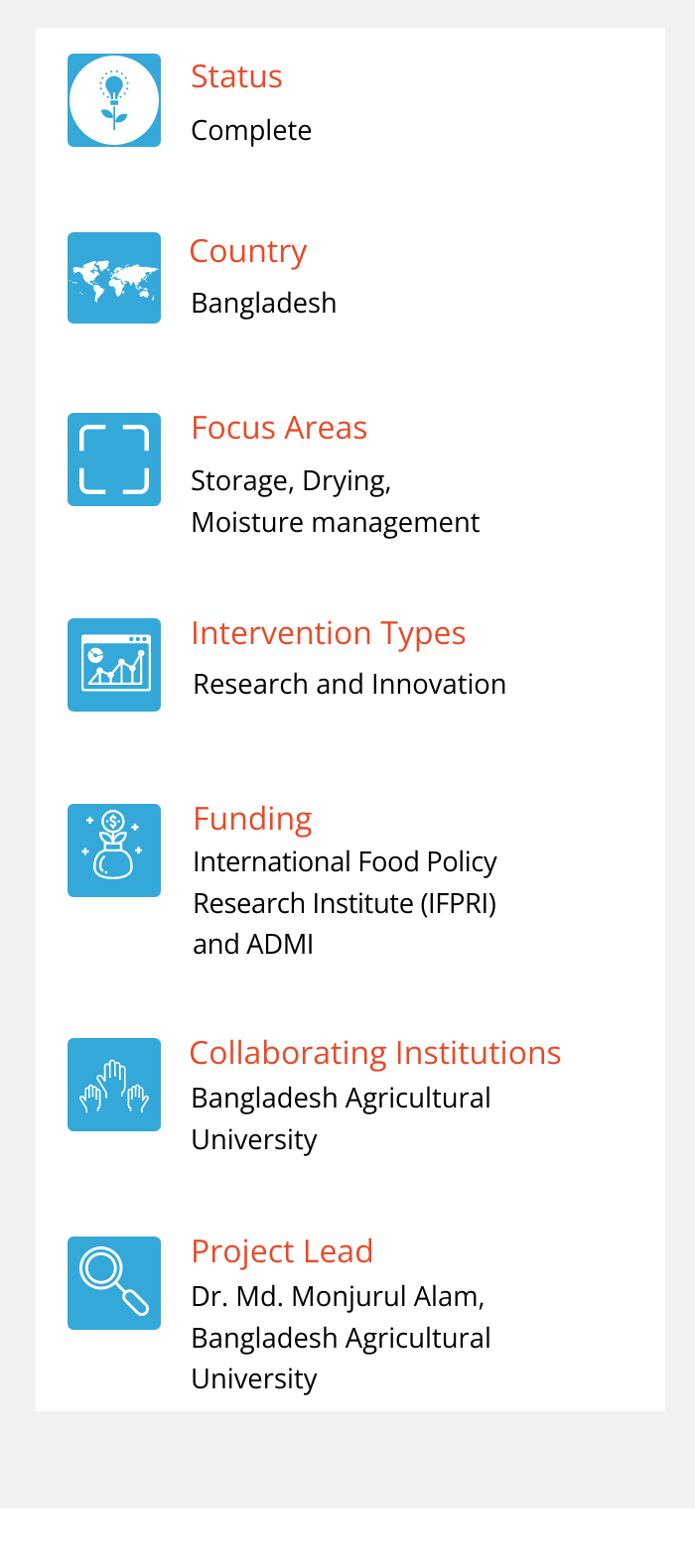 The Government of Bangladesh’s Modern Food Storage Facilities Project (MFSP) aims to improve storage of the country’s rice supply. While this would improve the storage of publicly procured and distributed rice, a considerable amount of the country’s paddy crop is stored in private rice mills or remains in possession of farmers. Reducing losses in these locations would increase the amount of grain available for consumption.