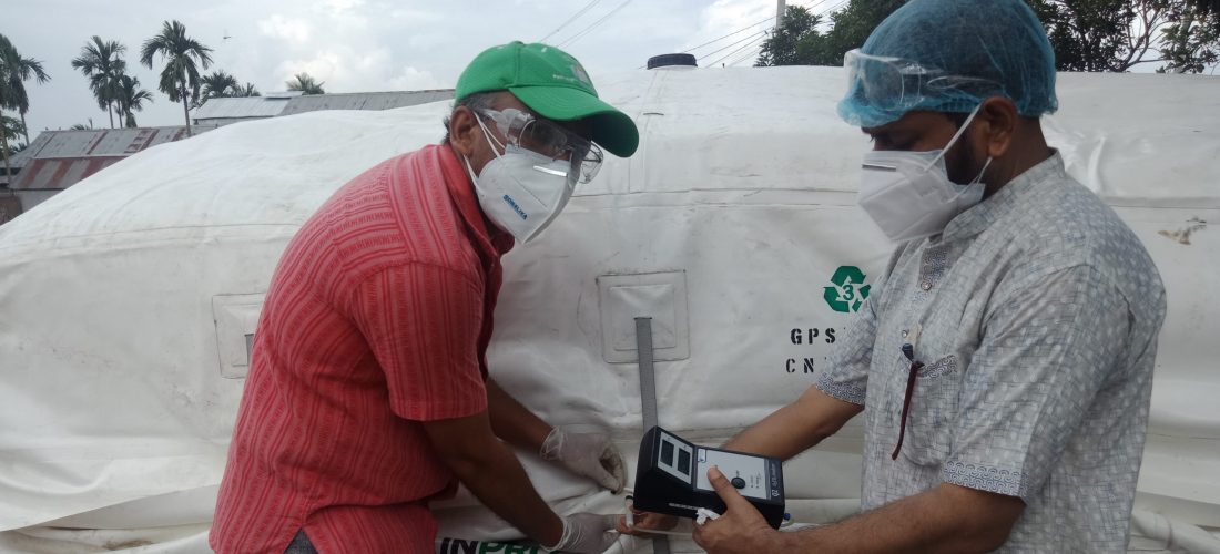 Researchers take regular readings for oxygen, carbon dioxide, moisture and humidity levels. The project will include use of multiple cocoon technologies differing by material (1250g/m2PVC; 205g/m2laminated PE; and 97.5g/m2PE), and placement (indoors or exposed). The capacity of the cocoons will be 5 tons. Paddy will be dried to a moisture content of between 12 to 14 percent (current miller practice), placed in 50 kg jute bags, and stored in five different technologies.